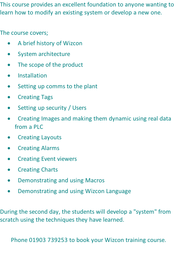 integrated control and monitoring systems Wizcon SCADA Training - 2 day basic development course s